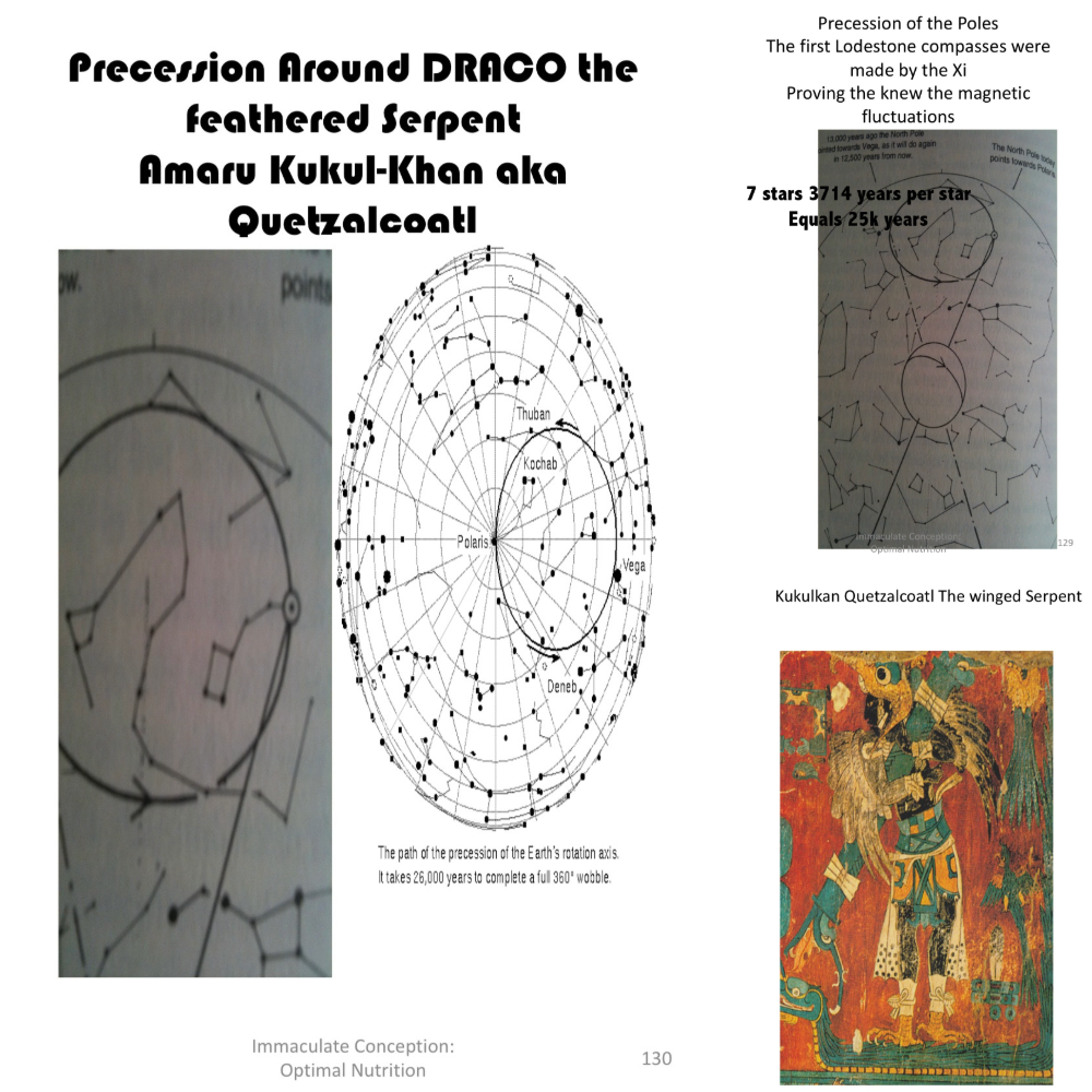 Astronomically, this serpent aligns with Draco — the circumpolar constellation that does not set in the northern sky. It circles the pole star. Through the precession of the equinoxes — the Earth’s 26,000-year axial wobble — the pole shifts from star to star across long cycles, yet Draco remains present in that rotation.
